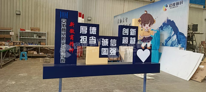 設(shè)計師在設(shè)計標(biāo)識牌的制作時需要具有一定的材料物理知識,需要熟悉材料的抗壓強度,延展性、收攏度、防銹等一些材料的特性,掌握材質(zhì)相一致的制造工藝,進行科學(xué)的加工。一些比較特殊的場所,比如兒童游樂園、幼兒園,這里的標(biāo)識牌就要考慮到它的安全性能,盡量少用一些易碎、鋒利的材料,選擇一些柔和的木料、塑料都是比較合適的。
